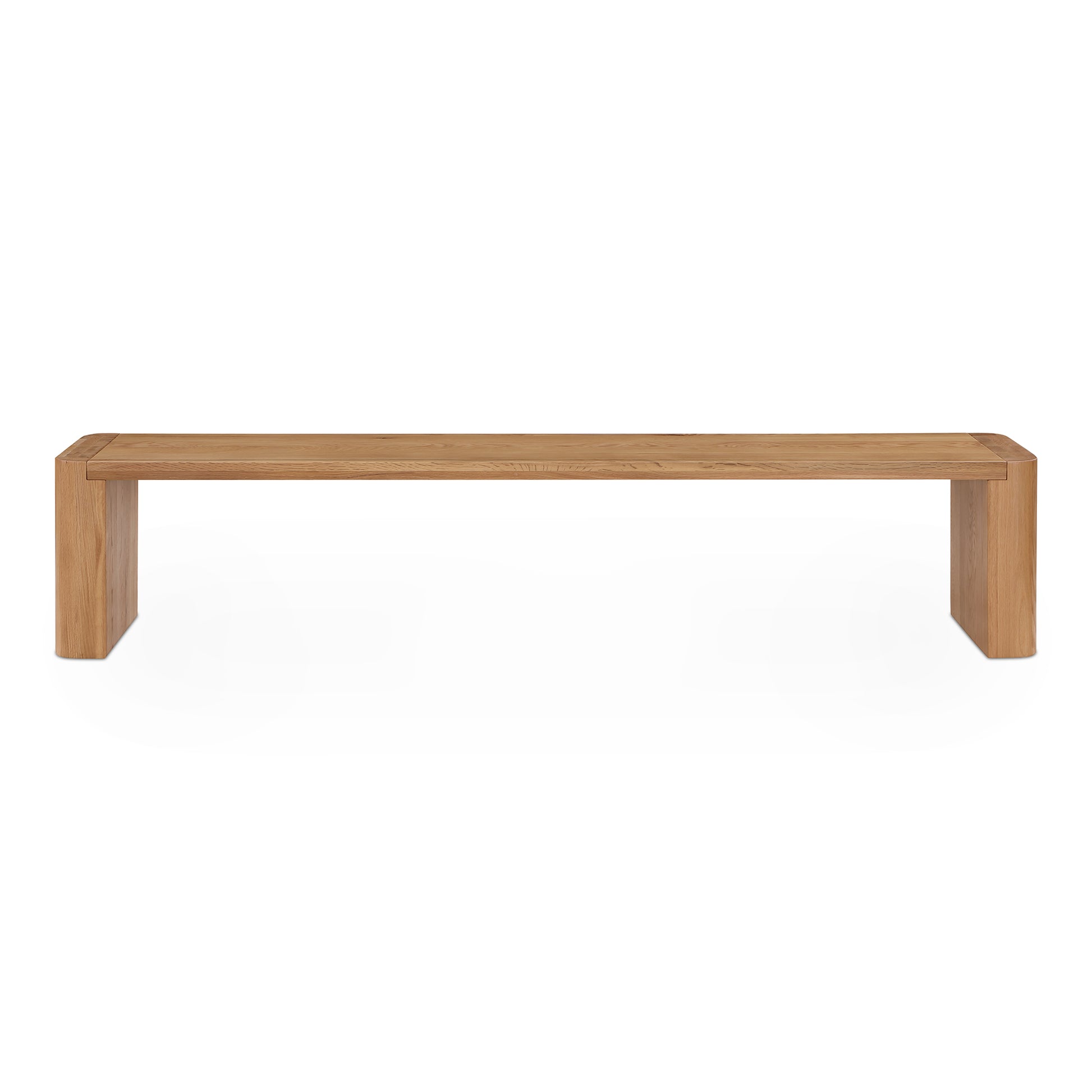 Well-rounded and honest, the Post dining bench's gentle geometries come alive with each dining experience. Available in two sizes, this sweet bench series showcases the rounded posts on each of its four corners, a rhythmic play on a familiar design where warmth and peacefulness come together in a stately, distinguished look. A natural beauty in solid white oak with a natural finish, this dining table shows off oak's beautiful grain patterning and shades. Post is the perfect perch for meals to come surrounded by natural, sculpted elements.