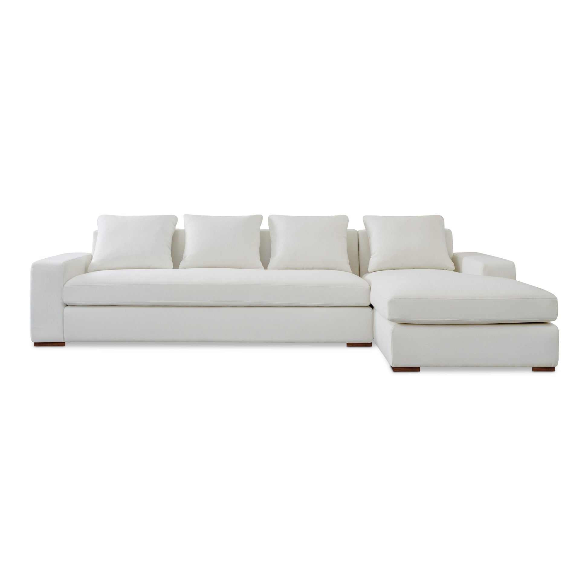 The Thomas sectional offers comfortable seating in durable C0 100% polyester fabric. An oversized structure, wide track arm, and bench-style seat topped with a 70% feather blend ensure even comfort. Featuring removable back cushions and even channeling within the seat to ensure its feathers stay evenly distributed, it is perfect for family living.