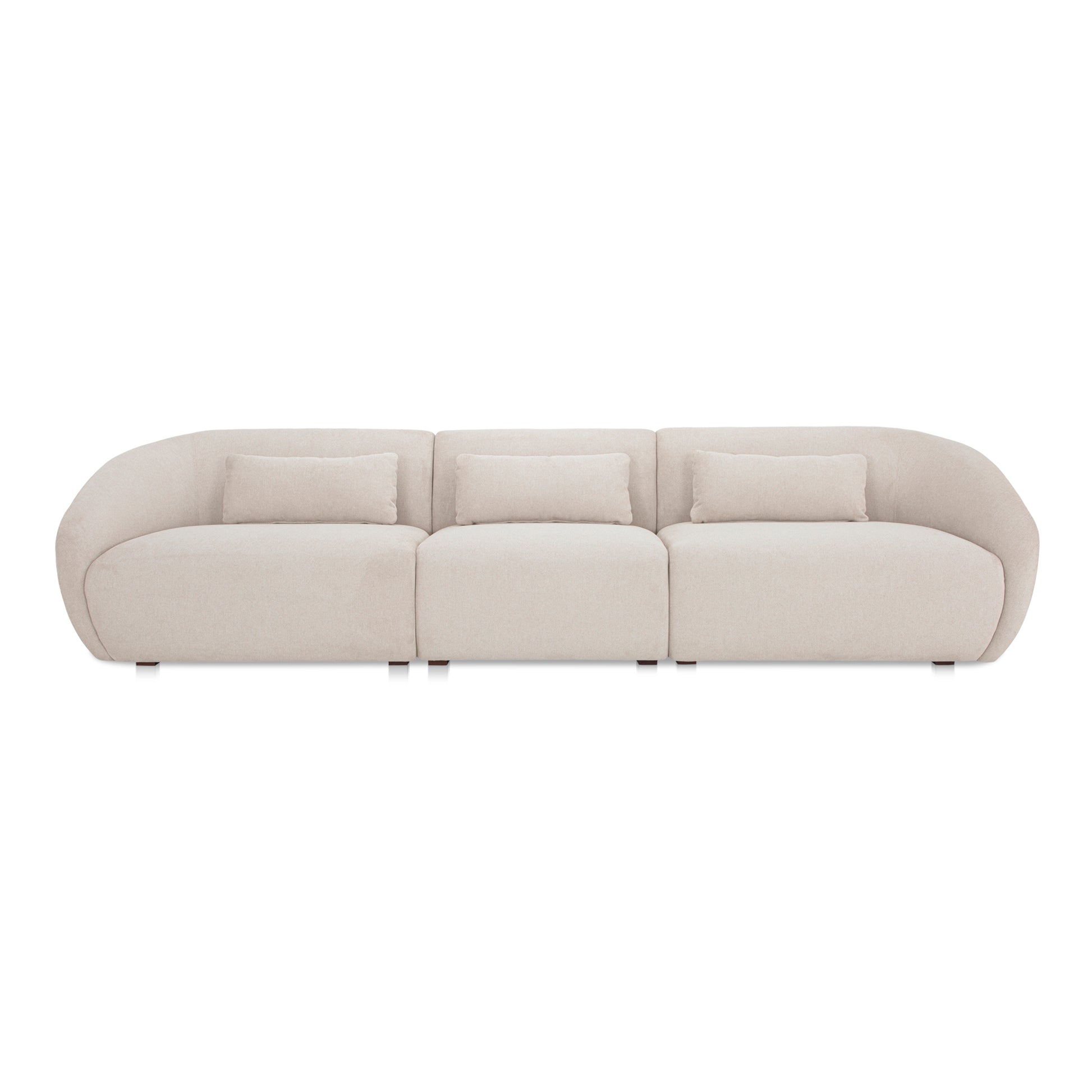 Offering a generous seat wrapped in rich, warm-toned upholstery, the Amelia modular sofa allows numerous configurations to fit any interior design or spatial requirements. Its high back and sloped arm curvature combine to offer a supportive seat, inviting guests to lounge and relax. For added comfort, a lumbar cushion is perfect for posture as this piece radiates a welcoming ambiance. Consists of 3 modular parts: 1 slipper chair, 1 left arm facing chaise, and 1 right arm facing chaise for easy switch around.