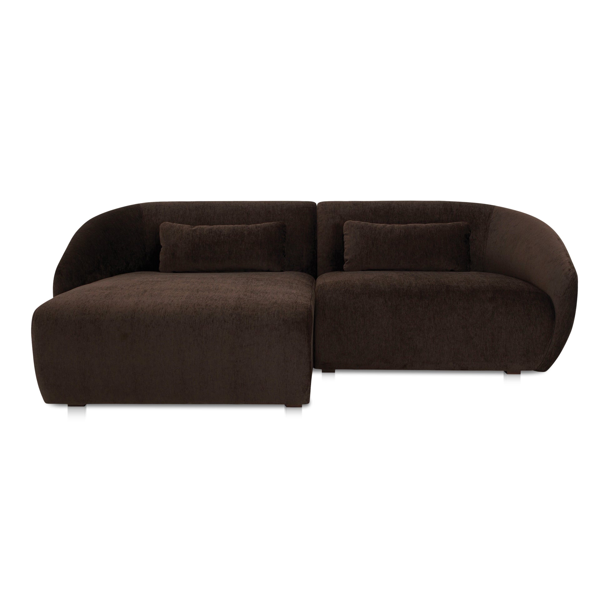 Offering a generous seat wrapped in rich, warm-toned upholstery, the Amelia Nook modular sectional allows numerous configurations to fit any interior design or spatial requirements. Its high back and sloped arm curvature combine to offer a supportive seat, inviting guests to lounge and relax. For added comfort, a lumbar cushion is perfect for posture as this piece radiates a welcoming ambiance. Consists of 2 modular parts: 1 right corner chair and 1 left arm facing chaise for easy switch around.