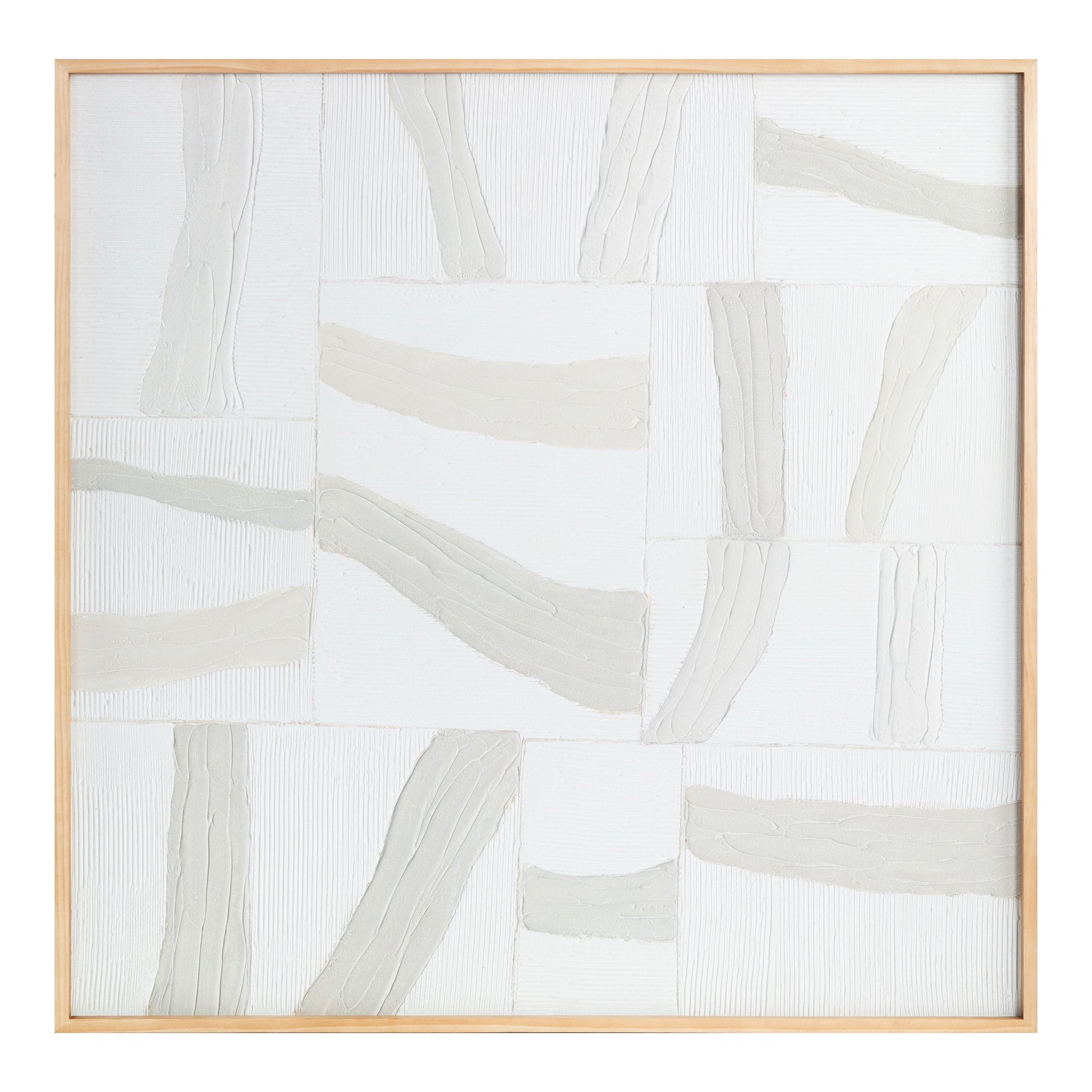 Configured is inspired by modernist artists and collage. The floating shapes appear to be turned and reconfigured for a reimagined composition, while the randomness of these shapes and soft muted tones create a surprising cohesion.