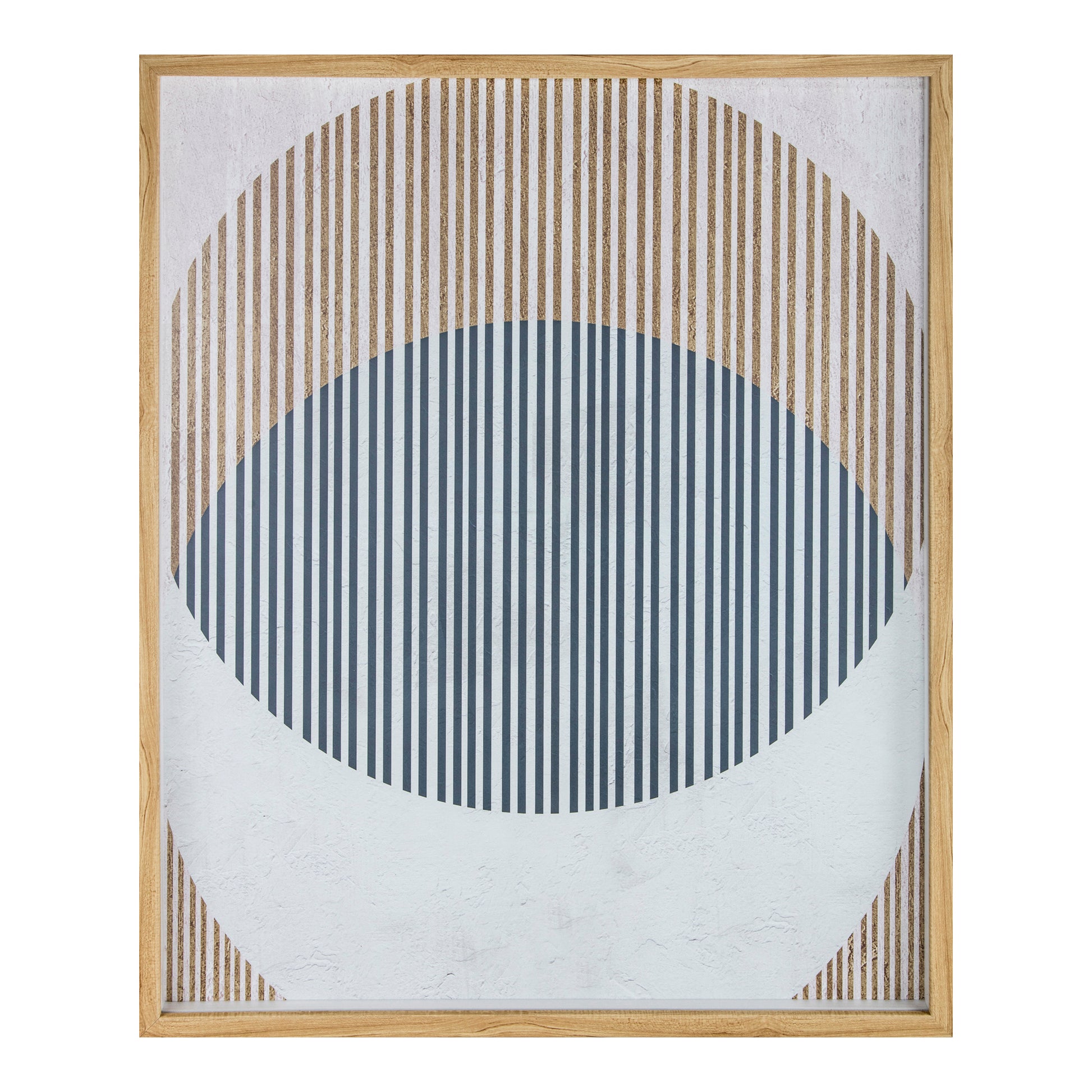 Featuring a unique ink print design in a high-quality frame, the Delight wall painting adds an artistic accent to any contemporary interior setting. Masterful lines outline a circular shape in contrasting shades of blue to yellow, to stunning effect.