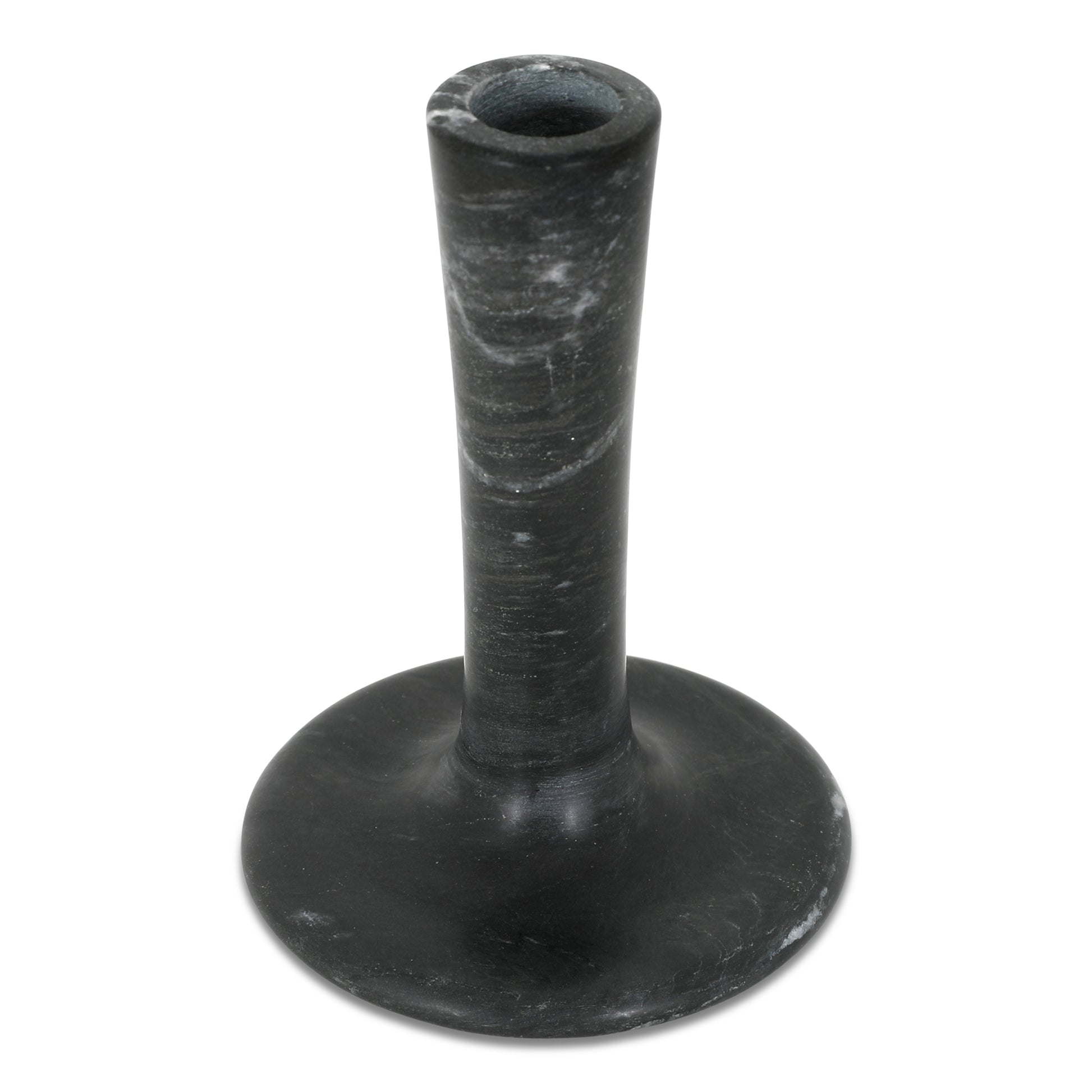 White and grey veins dance across the black marble of the East candle holder -- its soft and timeless silhouette enhanced by this bold matrix natural patterning. Available in two heights - short and tall - to mix and match.