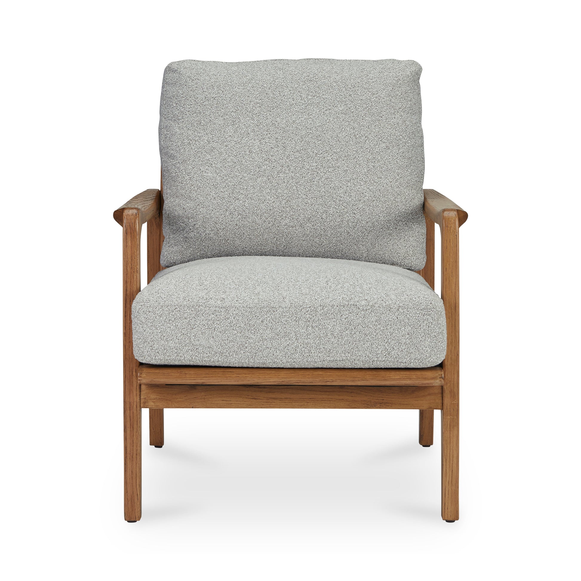 The Fearne accent chair touts a timeless silhouette that features a solid oak frame with a natural, aged finish, blending mid-century design and rustic charm. This piece is upholstered in soft-touch textured fabric to evoke a heritage feel, elegantly bridging the gap between past and present.