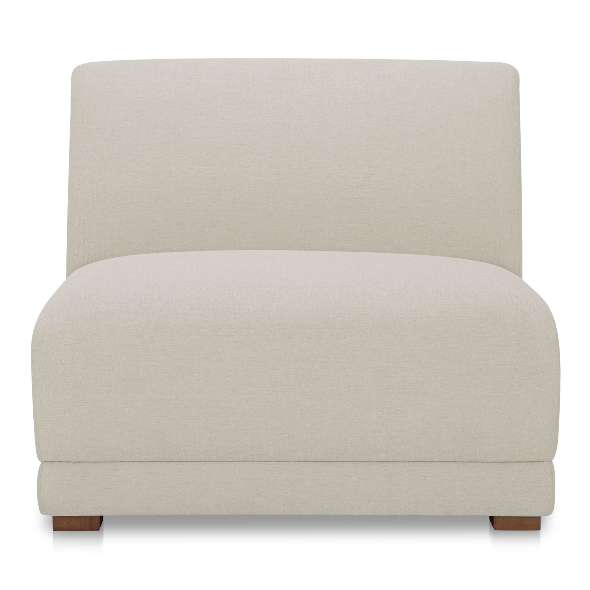 The Fraser slipper chair's contemporary design infuses the elegance of gentle slopes with linear precision, harmoniously merging soft curves and angular forms into its 60s and 70s-inspired aesthetic. Crafted on a minimalist plinth base and upholstered in sumptuous 100% polyester, foam and fiber seating invites serene repose.