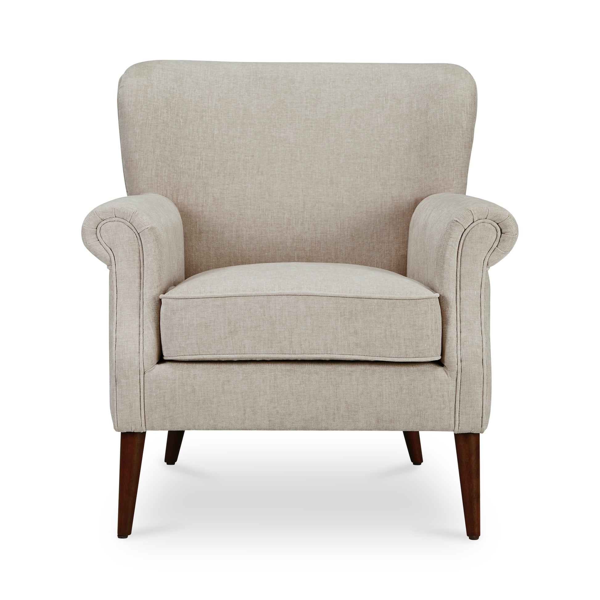 The Harriet accent chair showcases the allure of transitional design with the soul of an heirloom. Each piece features a classic rolled arm and a broad back for an inviting look and feel. It is upholstered in soft, woven fabric to give the impression of a gentle, sun-drenched fade that suggests a storied history--a touch of timeless appeal and sun-kissed comfort.