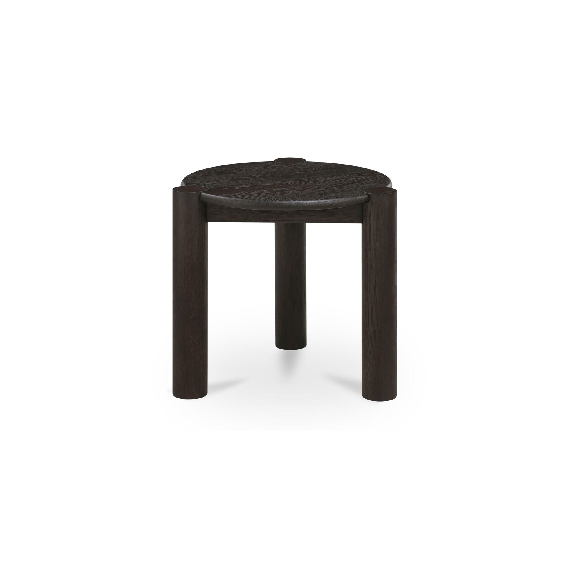 Built to round things out. A solid oak top with a smooth bullnose edge meets four sculptural column legs in a bold joinery detail that’s all craft and confidence. The legs add weight and definition to the rounded form, striking a balance between soft curves and strong structure. Finished in a wire-brushed dark brown, it’s grounded, sculptural, and made to hold a drink (or two).
