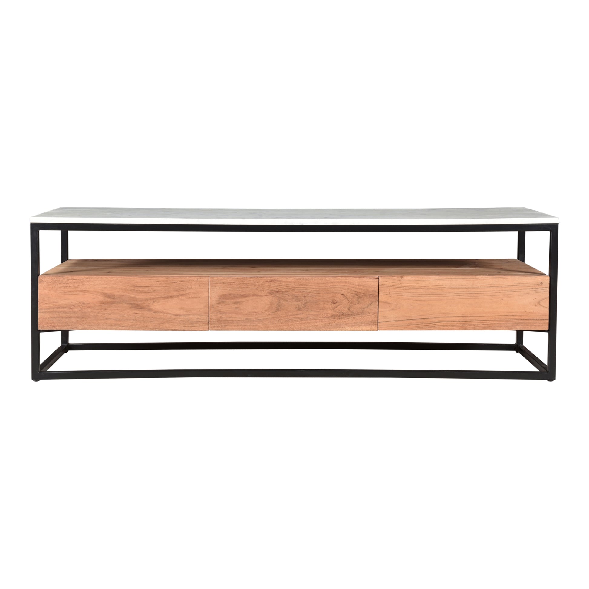 A marble marvel. The Kula’s tabletop is made of highest quality banswara marble, a perfectly smooth surface with all the individuality of the stone left intact. Kula’s solid acacia body features three soft-close drawers for all your storage needs while a sturdy iron frame supports its blocked silhouette. A marble marvel that embraces mixed materials.