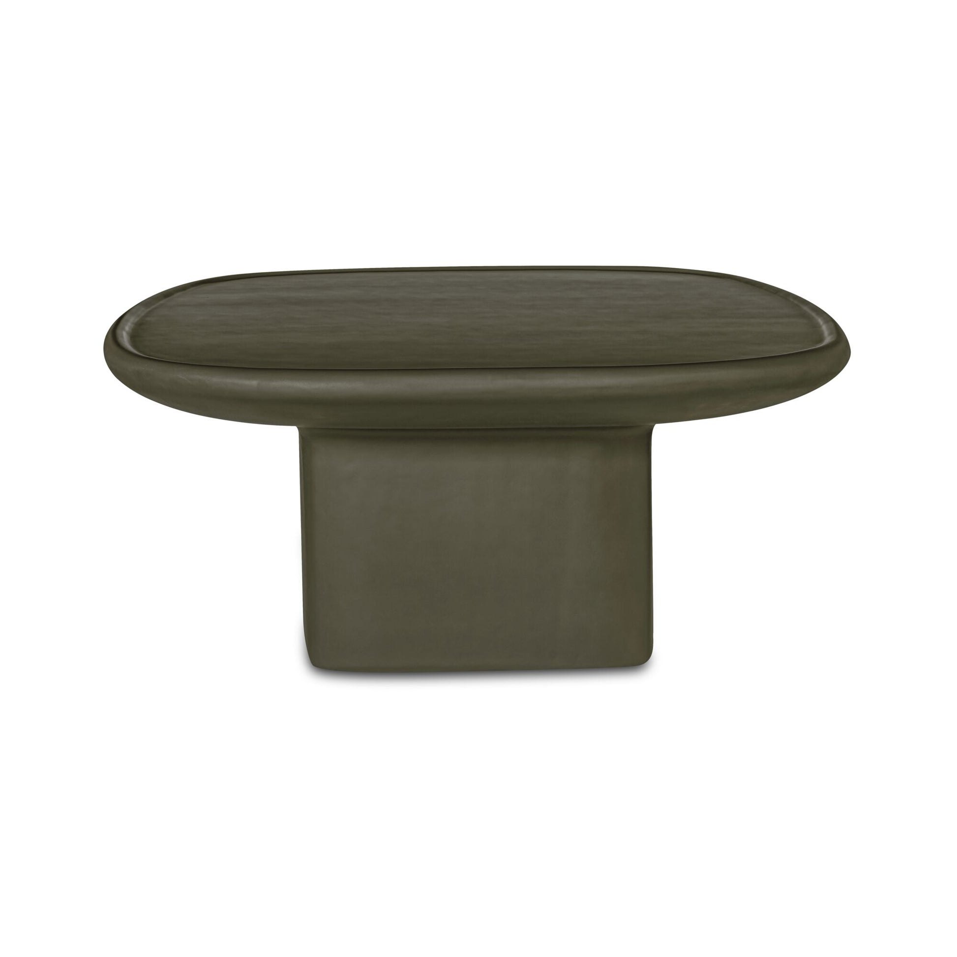 The Manon outdoor coffee table's pedestal silhouette, reimagined with gracefully rounded edges, elevates a classic shape with contemporary appeal. Crafted from an innovative blend of concrete and fiberglass, this piece offers enduring durability without compromising style for a striking focal point.