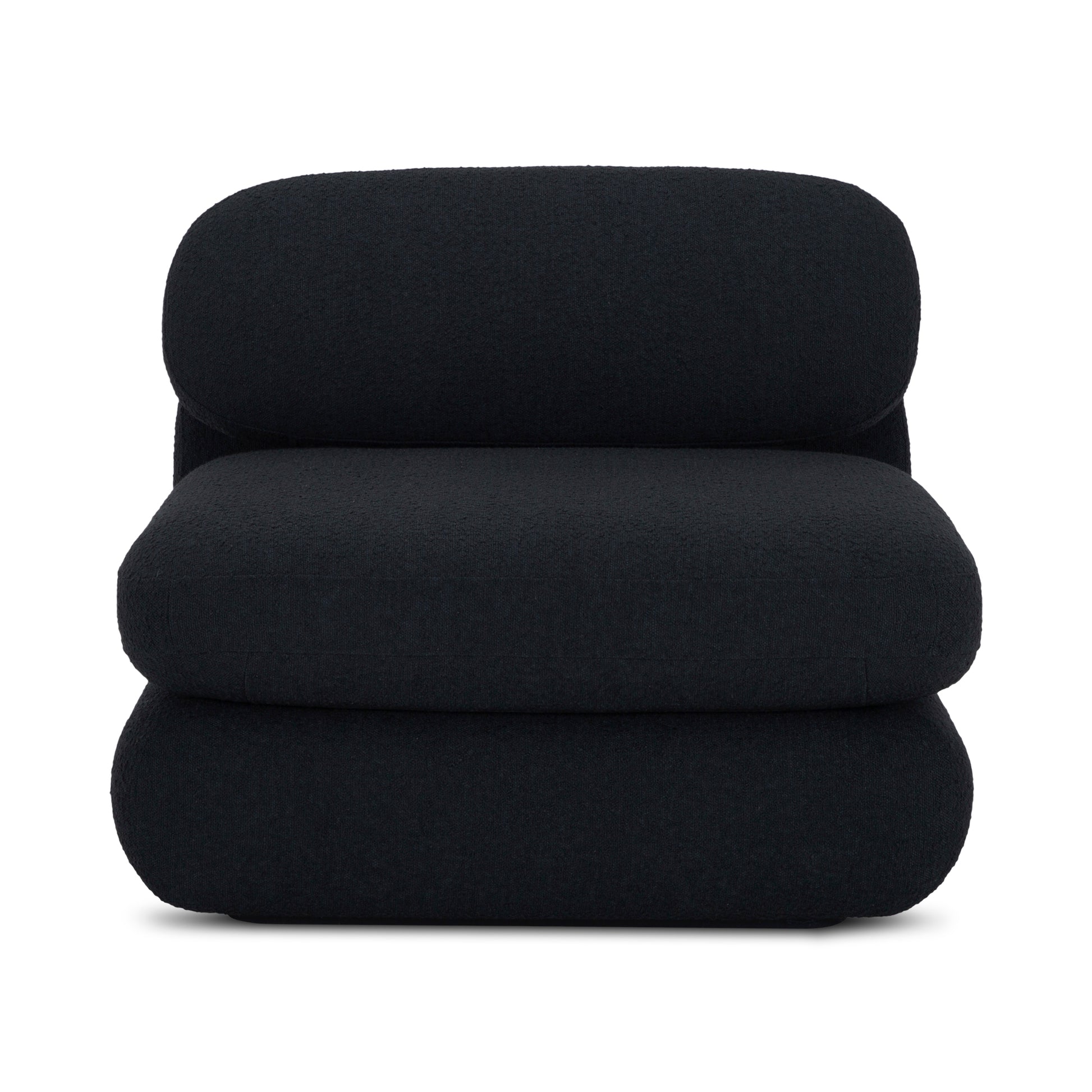 Inspired by the captivating styles of the 70s, the Scout lounge chair brings a piece of the past into the present. Clad in textured bouclé fabric, the chair merges visual allure and tactility. Its curved form, combined with a rounded and elongated cushion, introduces a touch of softness to any space, while the plump seat cushion promises modern comfort.
