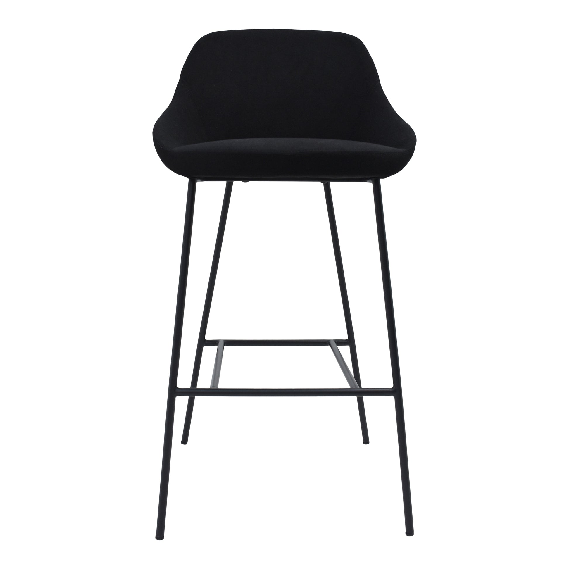 Turn your bar around with the Shelby bar stool. Upholstered in smooth dark fabric for a seamless look in your kitchen. Set atop of dark, slim steel legs for a minimal look that's easy on the eyes.