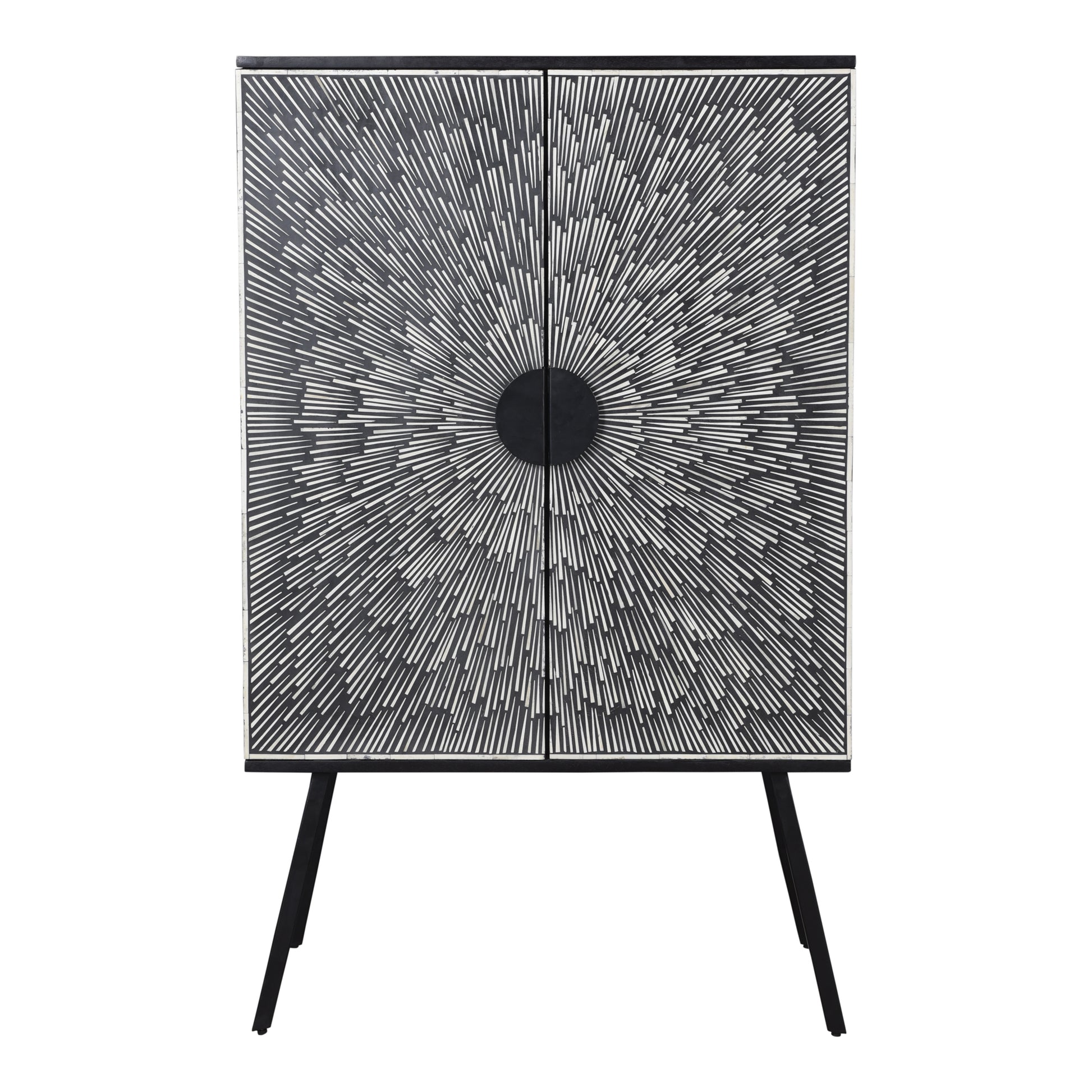 Shine on with the Sunburst wine cabinet. This black-and-white camel bone and resin affair will leave you starstruck every time you reach for a bottle. Two wide swinging doors leave plenty of space for your wine collection.