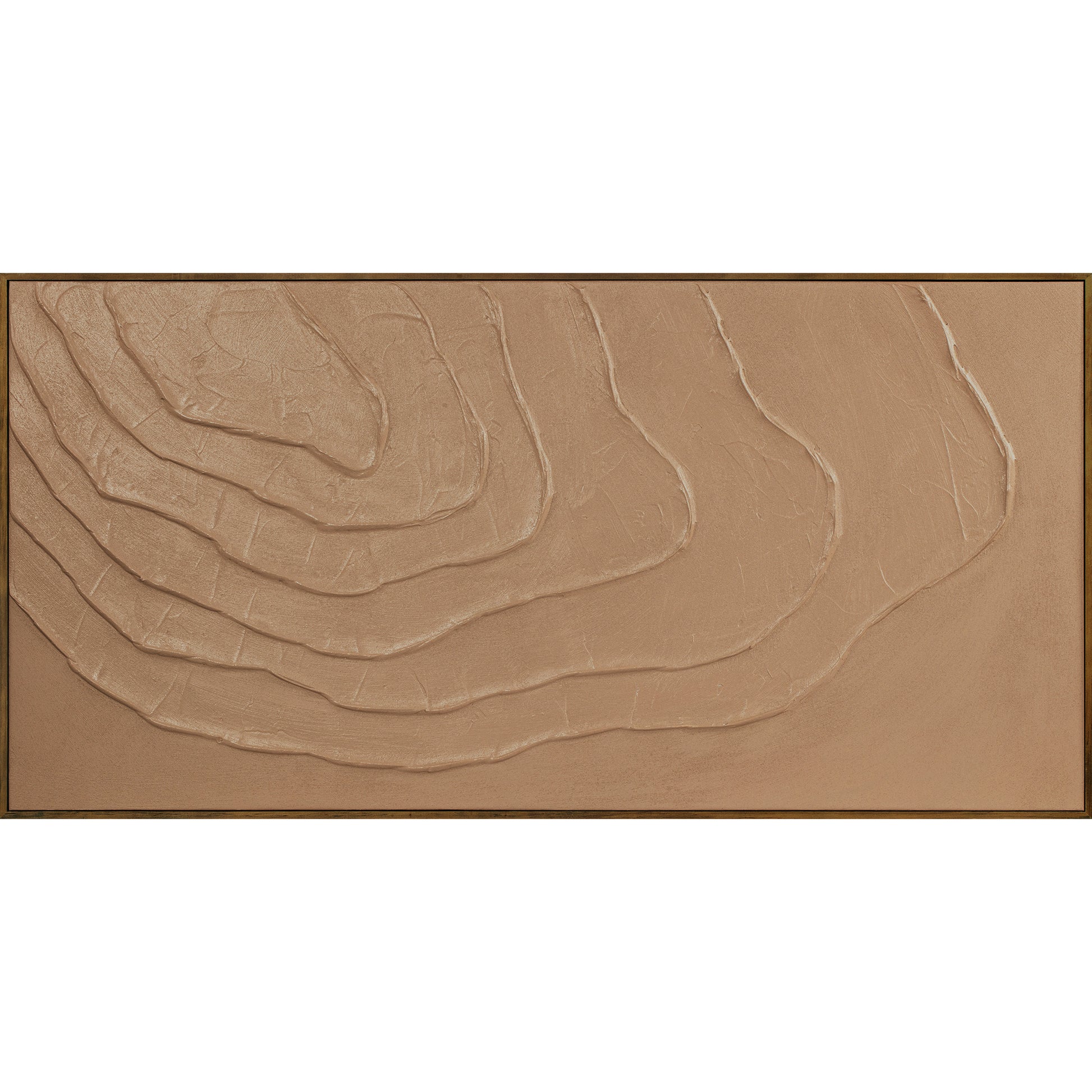 The Umbria framed painting's tactile layers of acrylic paint add profound depth, allowing viewers to get lost in the mesmerizing layers that swell and dip across the canvas. The piece evokes the undulating textures and nuances of a desert landscape as the fluid strokes and ripples of the paintwork conjure images of the Earth's topography.