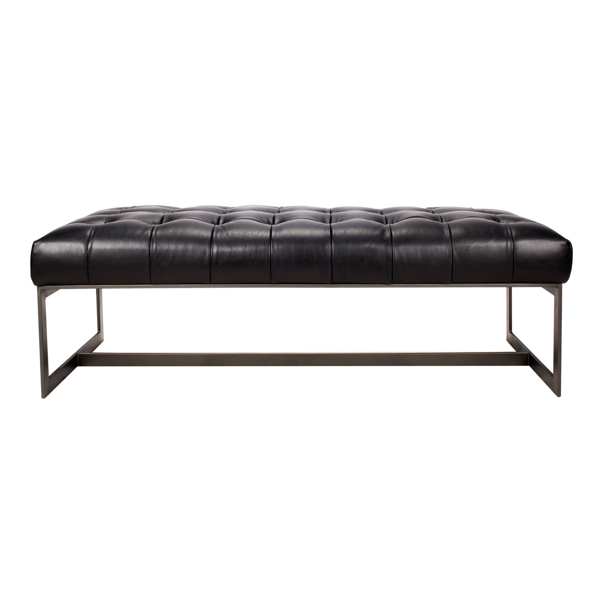 The Wyatt Bench is a good balance between industrial and glam aesthetic. The tufted, top-grain buffalo leather brings opulence, while the modern, sturdy legs provide functionality that will be perfect on your entryway, living, or bed spaces.